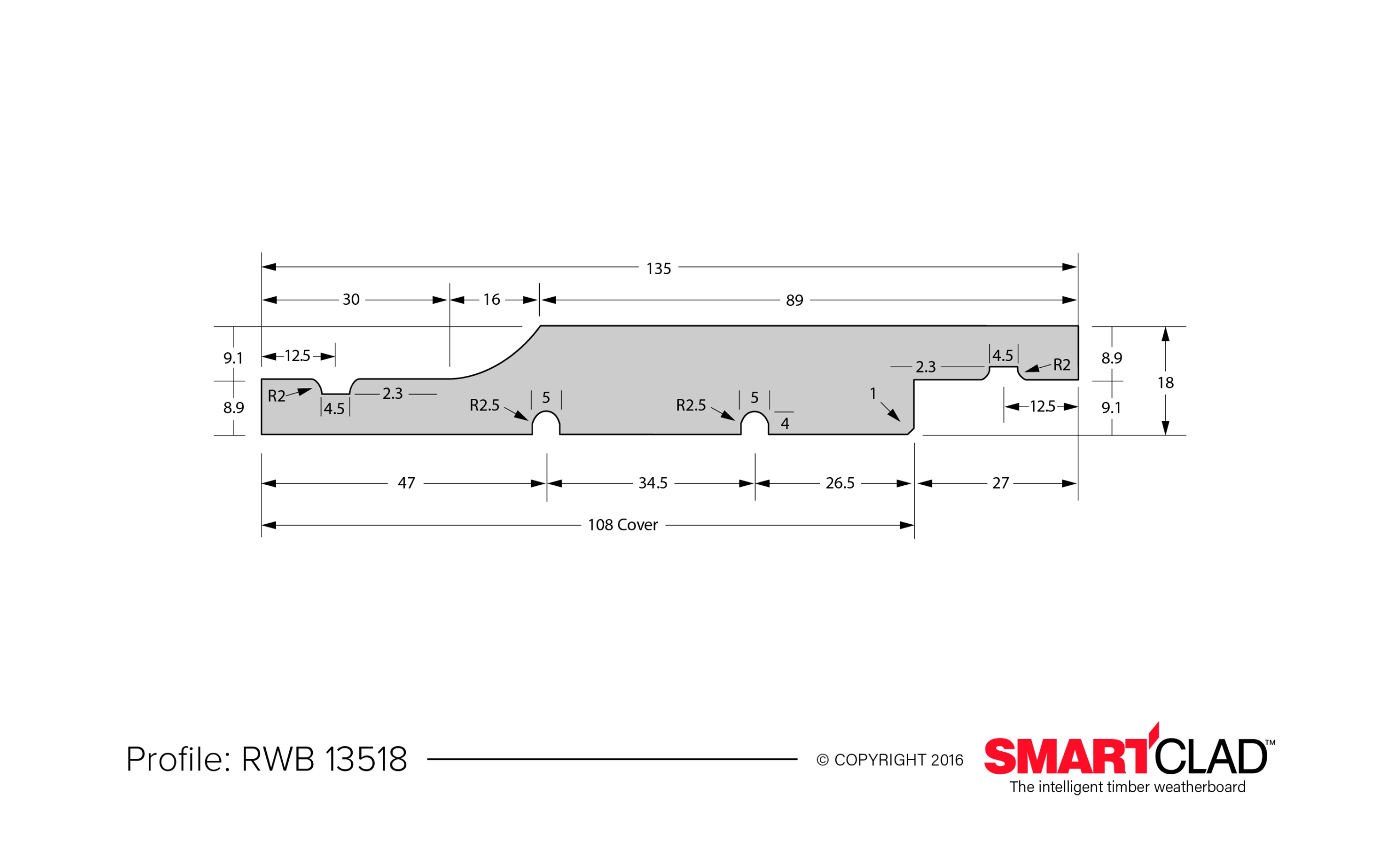 SmartClad Technical drawings – Weatherboard Profile Specs